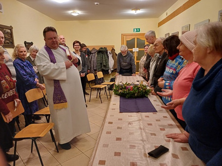 Šviesos grupės Advento laikotarpiu ruošėsi Jėzaus gimimui dalyvaudamos rekolekcijose su išpažinčių, ligonių sakramento galimybe. Prieš šv. Kalėdas laužėme kalėdaičius ir linkėjome vieni kitiems pačių geriausių dalykų. Vėl susitikome Naujais metais abi grupės kartu, paminėjome Jubiliejinių Vilties metų pradžią malda ir šventiniu koncertu. Viešnios Daivos Bauerienės gitarai duodant toną, pagiedojome Kalėdinių giesmių, o socialinė darbuotoja Indrė nustebino išsitraukdama smuikelį ir duetui pasikvietusi savo dukrą Mariją, grojusią altu. Buvo ir dovanėlių, kurias reikėjo „išsipirkti“ pasakant kokį eilėraštį ar spėjant mįslę – visi liko apdovanoti! Dėkojame būriui savanorių ir rėmėjų, prisidėjusių prie šventės! Net ir šventei pasibaigus vis dar nenorėjome skirstytis...